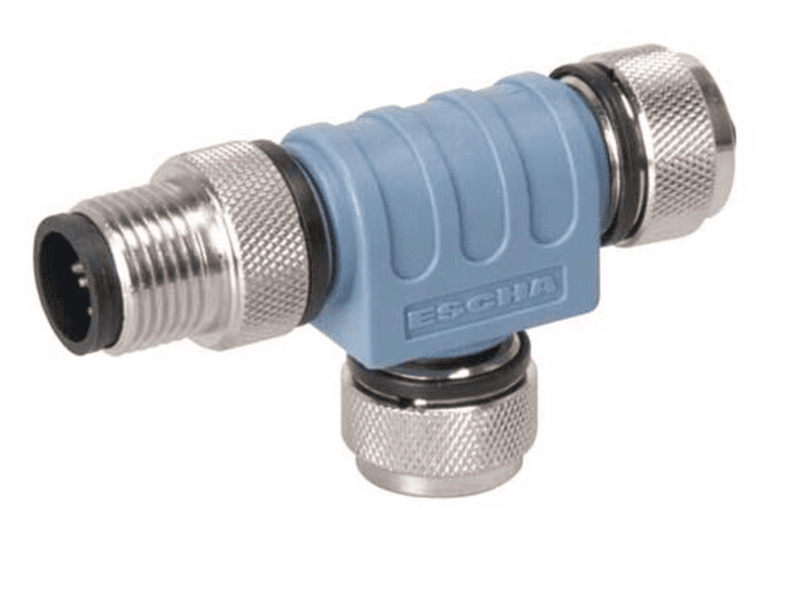 A Tee is used to tap into the trunk line for adding a drop connection. The standard tee is also available with a cap for a protected diagnostic connection. Tees can be mated with all other devices on the network of the same connector style.
