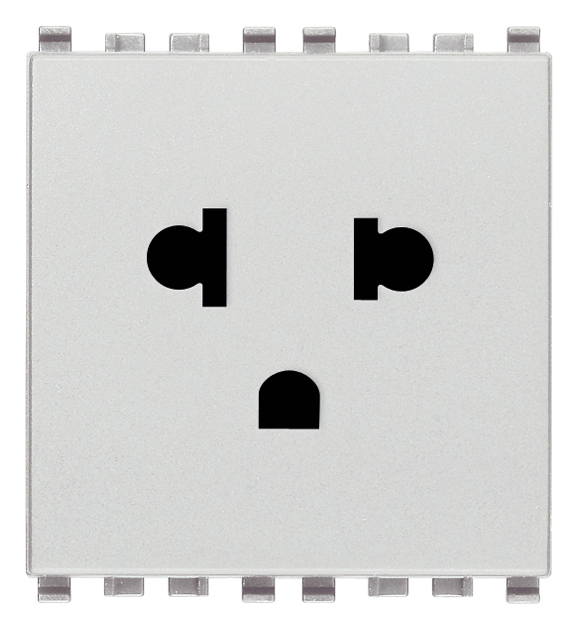 The Vimar Next 2P+E 16A Sicury wall socket is a premium flush-mounted electrical outlet designed for safe use with both USA and EU plugs. With its silver matt finish and integrated safety shutter system for enhanced contact protection, this 250V power socket delivers reliable performance and a modern aesthetic, ideal for residential interiors, yachts and professional office spaces.